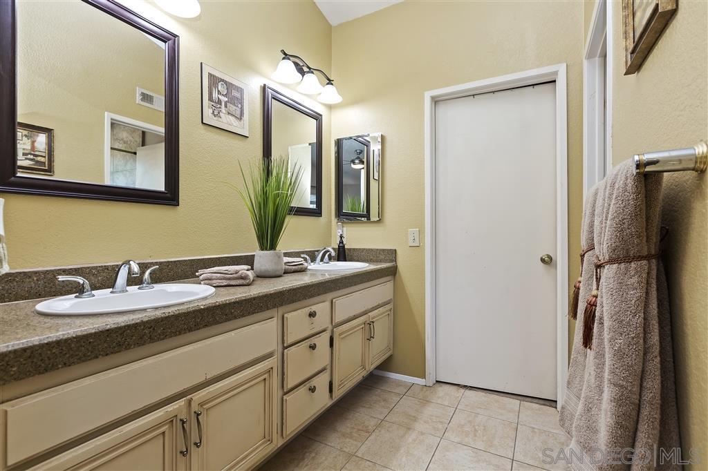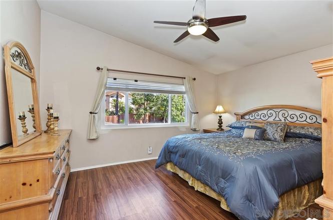 This Park Village Home is located in a Cul-de-Sac with 4 spacious bedrooms upstairs and bonus room downstairs. Features: Granite kitchen countertops, gas fireplace w/ marble hearth. Updated bathrooms, Whole house AC, Tile floors down/Wood Laminate Upstairs. Oversized backyard room for Pool. Covered patio is great for entertaining guests, fire-pit. Solar system Included, dual-paned Windows, 3 car garage built-in storage cabinets. No HOA/Mello-Roos fees. Located in the highly acclaimed Poway Unified School District. Close to 56 freeway . 10 minutes to Torrey Pines Beach.