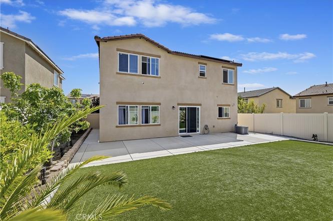 This home qualifies for the Hero Homebuyer Credit which is designed to help our heroes (teachers, government employees, firefighters, military & more) purchase a home by offering up to $30,000 to cover closing costs and expenses to qualified buyers! Only about 6 years old and fully landscaped with an easy care turf yard in the Santa Rosa Highlands community in West Murrieta! This is the place where comfort, convenience, and style come together! The living room, dining room and kitchen areas offer an open concept with premium touches, like the waterproof vinyl flooring! You will love the chef’s kitchen – featuring stainless steel appliances (all INCLUDED!), sleek granite countertops, and a spacious center island w/ seating that’s perfect for entertaining. Plus, there’s a separate pantry for your storage needs. The paid-for water filtration system & softener are installed—saving you the initial installation costs and providing water quality. Upstairs, you’ll find a loft area with nook—ideal for a home office, game room, playroom, or hangout space. The primary bedroom suite has plenty of room for a Cal King if desired and the primary bathroom has TWO walk-in closets, separate bath and shower, and dual sinks. Two additional spacious bedrooms help make this home stand out. When it’s time to relax outside, enjoy the low-maintenance front and backyards with easy-care artificial turf (again saving you thousands of $ on initial costs of installation). There’s also a paved patio for BBQs and lounging, plus fruit trees in front and back that can provide fresh produce for years to come. Worried about energy costs? The leased solar system is a low $63.67/month payment, and the whole-house fan keeps your home cool while saving you more on electricity! There is a finished two car garage with the tankless water heater installed. The community has what you need too—pool, spa and park w/ play area –a walk around the corner! The location is conveniently close to shopping including Lowe’s, highly rated restaurants, the famous wine country offering music and entertainment, and public golf courses. This home won’t disappoint – make a quick appointment to see!