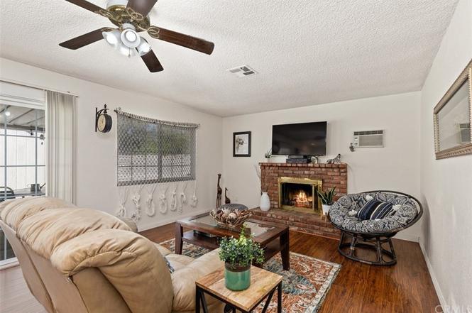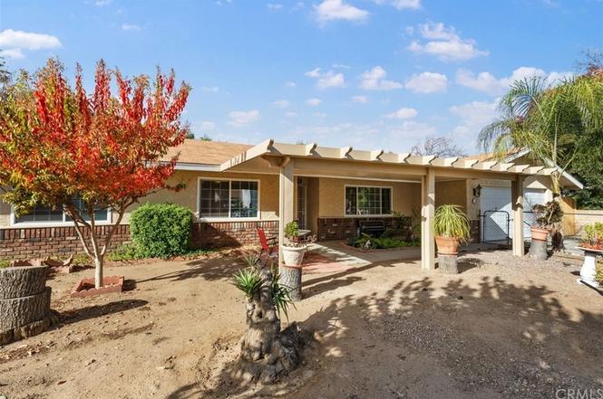 Must see this charming Lakeland Village ranch style home! Assessor shows interior is 1630 square feet; seller measured at 1800. Low taxes and no HOA. Formal living room. Formal dining room could be used as a good size home office or guest room. Upgraded kitchen with new dishwasher, newer stove and range hood, breakfast bar and abundant bright white cabinets is open to the family room with oversize brick fireplace and gas logs. All bedrooms are comfortably large. Master and secondary baths are tastefully upgraded. Enjoy spectacular mountain, sunset and occasional snowy views of the Cleveland National Forest from covered front or backyard. Pool-plus size backyard has two large storage sheds with room for a workspace and lots of toys. Updated garage has built in cabinets, workbench, utility drawers, wall mount for tools and custom interlocking flooring. The enclosed front yard has two gates for vehicles: driveway and garage on one side; small RV or boat on the other and an interior pedestrian gate leading to the spacious Alumawood-covered patio and front door. There is a small corner market nearby for convenience. Located near Highway 74 and the Lake. Mature fruit trees include lemon, loquat and super-sweet mandarin oranges! Your lake house awaits and is priced to sell!