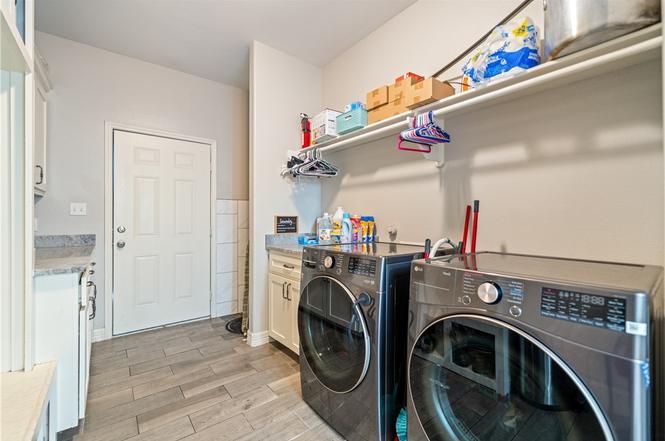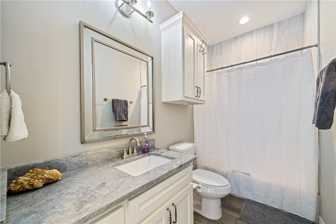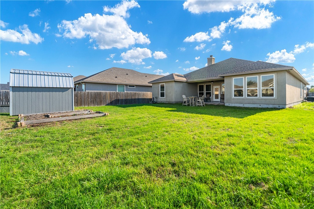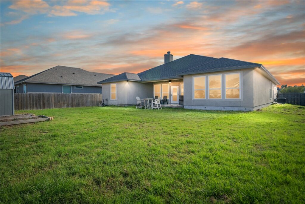 Come and see this newer, beautiful, one level home in Flour Bluff! You will love this amazing floor plan that features a second private suite, perfect for a MIL or other family member. This 4/3/2 has 2432 SF and is situated on a corner lot with over 9000 SF. This home offers an open floor plan with very spacious rooms, large windows for ample natural light and includes an eat-in kitchen (kitchen table with bench can stay) with large pantry, gorgeous granite countertops, kitchen island, breakfast bar, SS appliances and tons of counter space and storage. Off the kitchen is a very large laundry with space to fold clothes, custom backpack cubby, a doggie shower, and exterior door. The primary bedroom is extremely large with soft natural light and the primary bath has a large shower with river rock floor, double vanities, private commode, linen closet, and walk-in closet. The large living room is perfect for unwinding after a long day with the vaulted ceilings, fireplace, and space enough to stretch out & relax. Outside you are going to LOVE this over-sized back yard that features a covered patio, a garden area, a large Derksen Lofted (2 lofts) shed, and a back gate that can open wide enough to store your boat in the backyard! Imagine having the space to host a large gathering for special moments like birthdays and holidays! A vivint security is also staying with this amenity-packed property in the FBISD area. Call your favorite agent now to schedule your private showing.