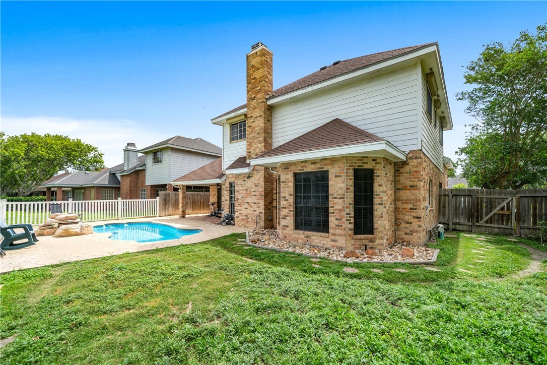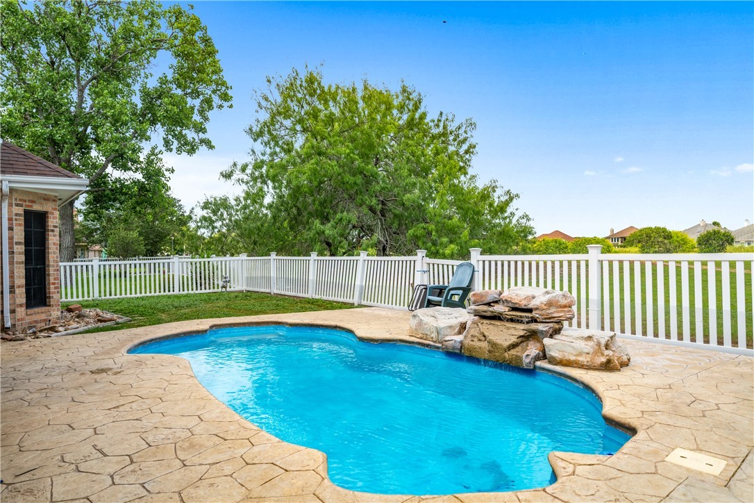 Are you looking for a beautiful home full of amenities in Vets Memorial district? Then check out what this stately home has to offer! Significant price drop and * * Seller is offering $5000 to Buyers for their closing costs * * The kitchen was completely remodeled in Nov 2023 and the Primary Bath was just remodeled in May of 2025! This property offers convenience, versatility, and fun, as well, with the pool out back that overlooks the green space of the former golf course. When you walk in this property, you are greeted with an open and vaulted ceiling and the first living space to your left. The path to your right leads to the main level laundry room, garage, a guest half bath, and the Primary ensuite with newly remodeled bathroom. This serene retreat offers a soaker tub, tiled shower, double vanities with tons of new storage space & bright lighting, LVT flooring, private commode, and a spacious walk-in closet. When you walk out of the Primary Bedroom and go to the right, you are greated with the large second living space and open kitchen. This space makes a perfect gathering space for many people to enjoy the homey fireplace, eat-in kitchen, and breakfast bar. The Nov 2023 kitchen includes SS appliances, double oven, large Farmhouse style SS sink, granite countertops, and tons of storage in the custom, soft-close cabinets. The back door leads out to the covered patio, backyard, and peaceful views! This home also has plantation shutters for added privacy and hurricane shutters for an extra layer of protection. Close to shopping & restaurants and EASY ACCESS to NAS-Kingsville & NAS-CC.